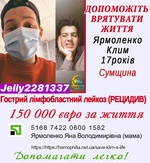 Шановні батьки і учні! Доброю традицією в нашій школі стала щорічна акція " 1 вересня без квітів, але з добротою в серці". У цьому році ми пропонуємо зібрати гроші на лікування нашого роменчанина, 17 річного Ярмоленка Клима, який уже кілька років бореться з гострим лімфобластним лейкозом. Для його порятунку потрібно 150000 євро. Давайте разом зберем частинку цієї суми і подаруємо юнаку життя!