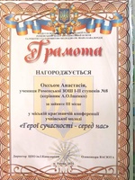 Вітаємо Оксьом Анастасію із зайнятим ІІІ місцем у міській краєзнавчій конференції учнівської молоді "Герої сучасності серед нас". Бажаємо успіхів!
