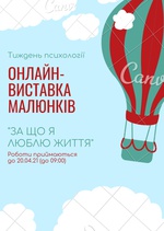 20.04.2021 планується проведення онлайн-виставки дитячих малюнків на тему "За що я люблю життя". Запрошуємо до участі усіх бажаючих. Фотографії з малюнками надсилайте своїм класним керівникам або на електронну адресу zubkonatalia2017@ukr.net . З нетерпінням чекаємо на ваші роботи!