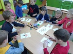 А ще, першачки спробували самостійно зобразити символ Олімпійських ігор. Для цього багато не треба: щіточки, фарба, аркуші, вода та посмішки наших найменших учнів) Пізнавати світ – цікаво!