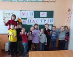 Сьогодні з учнями 1 класу було проведено заняття з елементами тренінгу "Мій настрій". Його метою було створення дружньої атмосфери в колективі, підвичення самооцінки учнів та формування здорових взаємовідносин у класі.