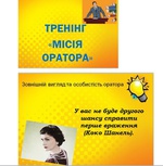 Тренінг з лідерами учнівського самоврядування на тему: "Місія оратора", на якому поговорили про три типи ораторів, як справляти перше враження на аудиторію, ознайомилися із публічним виступом Стіва Джобса (Steven Paul Jobs) американського інженера, дизайнера, співзасновника і генерального директора корпорації Apple Inc. А також пройши тестування "Гарний оратор". За словами Черчіля, британського політичного діяча : "Оратор має вичерпати тему, а не терпіння слухачів" - радимо дотримуватися даної поради при публічних виступах) Все буде Україна)