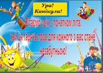 Бажаємо Вам чудових літніх канікул, сонячної погоди, холодного морозива, бронзової засмаги та незабутніх вражень!