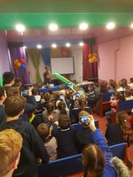 У школі пройшла виставка "Парад ідей", яку відвідали більше 90 учнів школи. Діти послухали цікаву розповідь про історію Землі, про наукові парадокси та незвичайне застосування законів природи, а також побачили і навіть змогли потримати закам'янілий зуб динозавра, шматок затверділої вулканічної лави, багато цікавих каменів. А ще бажаючі потримали в руках справжню блискавку і побачили деякі незвичайні досліди. На згадку про зустріч всі могли придбати сувеніри.
